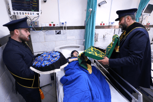 به گزارش پایگاه خبری جارچی روز، خادمان آستان مقدس حضرت فاطمه معصومه سلام الله علیها به همراه پرچم متبرک حرم مطهر و تبرکات حضرتی، عصر امروز در آستانه سالروز رحلت بانوی کرامت با حضور در بخشهای مختلف دو بیمارستان شهر مقدس قم، از بیماران عیادت کرده و برایشان دعای عافیت و سلامتی کردند.